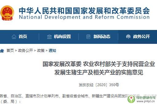 國家發展改革委農業農村部關于支持民營企業發展生豬生產及相關產業的實施意見
