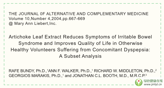 1、 朝鮮薊葉提取物減少腸易激綜合癥的癥狀,改善患有伴隨性消化不良的健康志愿者的生活質量