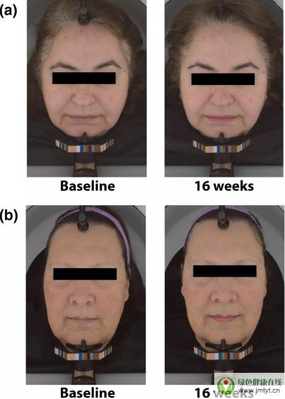 在研究開始時、第4周、第8周、第12周和第16周五個節點對受試者進行皮膚評估,通過BTBP 3D ClarityPro®面部建模和分析系統獲取具有標準化照明的高分辨率面部照片;使用高清面部影像技術和獲認證的3D面部建模和測量方式對面部皺紋進行量度和評估。并且在0、8和16周時測量受試者皮脂生成量和表皮水分流失,來評估皮膚屏障功能。
