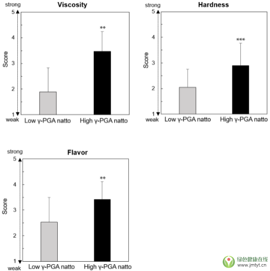 雖然這些數(shù)值沒有針對多重統(tǒng)計測試進行調(diào)整,但研究是探索性的,高γ-PGA納豆粉的血糖IAUC在所有時間點的三次測試餐中表現(xiàn)最低,并且在餐后45分鐘內(nèi)顯著低于低γ-PGA納豆。所以,這些結(jié)果表明,在人類進食后的早期階段,同時食用高γ-PGA納豆可能有效抑制餐后血糖水平的升高。